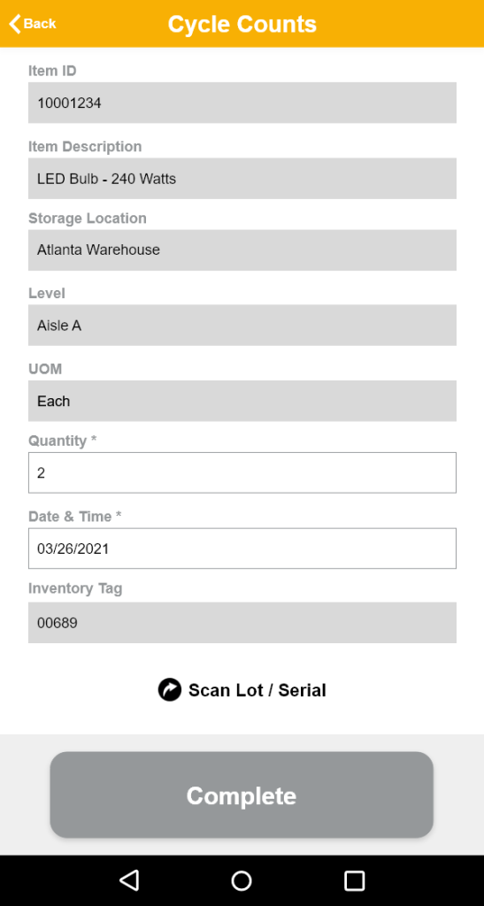 Return to Inventory Details